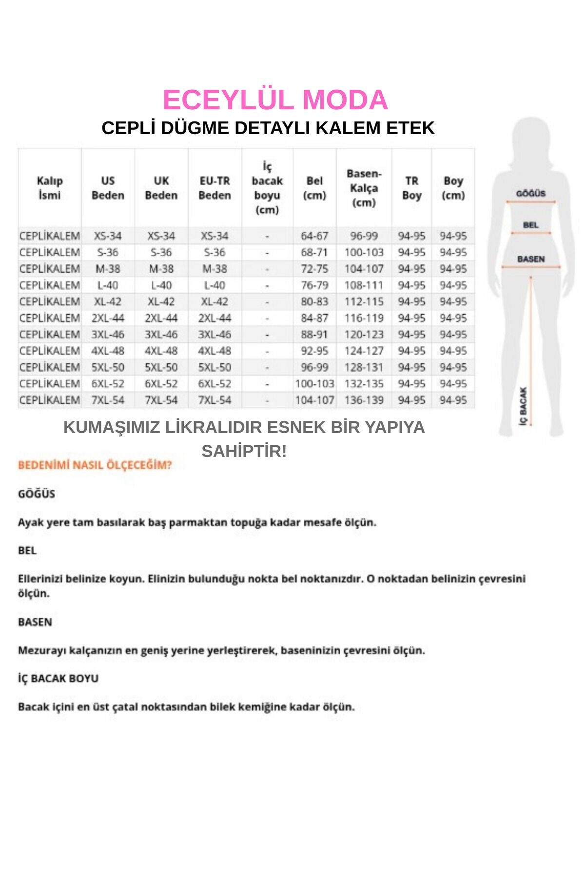 CEPLİ (DÜGME DETAYLI 93-94cm) KALEM ETEK(kısa süreliğine lansman fiyatı)